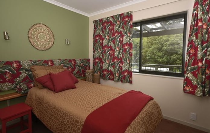 The Rosella’s nest is a twin room named after the parrot found in Northland and that lives in the area surrounding the Yoga Retreat. The tiled bathroom with Italian shower is shared with one other room. Its private deck is the ideal place to meditate and relax in the shade of our grape vine.
